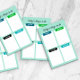 Mint grünes Notizblock personalisiert mit Namen, mit vier Kategorien, schnell, später, und Notizen, den Text anpassbar, in den Farben Schwarz, Grün und Blau.