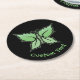Das Schmetterlingsymbol besteht aus grünen Minze-Blätter. Benutzerdefinierte Hintergrundfarbe. Eigener Text.