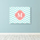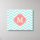 Mint & Coral Zigzags Muster Monogramm Leinwanddruck