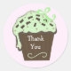 Ein lustiger Dankeschön-Aufkleber mit einem weichen, grünen Pfefferminzkuchen mit Schokoladensprinkles.