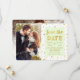 Hochzeit speichern Sie das Datum Ankündigung benutzerdefinierte Foto-Karte in hellpastellfarbenen Minz grün und weiß mit goldenen Konfetti-Muster und handgeschriebenen Stil Text. Geeignet mit Ihren Hochzeitsdetails und Ihrem eigenen Foto, erhältlich in einer breiten Palette von passenden Hochzeitsartikeln. Kontaktieren Sie uns, um eine Farbänderung oder ein individuelles Produkt anzufordern.