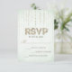 Dieses stilvolle Hochzeitstil-RSVP-Kartendesign von The Gepunktet Olive™ zeichnet sich durch einen weichen Hintergrund aus, mit einem Bild von Streaming-Edelsteinen, das von oben nach unten kommt, und dem Wort "UAWG", das mit einem Bild von Goldmedaille gefüllt ist. BITTE BEACHTEN SIE: DIESES DESIGN BIETET NUR EIN DRUCKENDES BILD VON GLITZER; ES GIBT KEINEN PHYSISCHEN GLITZER, DER VERWENDET ODER INKLUSIVE IST; ES GIBT KEINE EMBELLISHIERUNGEN. DAS IST EINE FLACHDRUCKTE EINLADUNG. Copyright 2014-Present | Der Gepunktete Olive™ | Alle Rechte vorbehalten