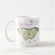 Weicher, grüner Schmetterling über Punkte von weichem, gedämpftem, vielfarbigem Muster. Schmetterlinge selbst sind Symbole des Wandels und der Unsterblichkeit....der Schatten des Grüns fügt die Symbolik von Positivität, viel Glück, Liebe, Wiedergeburt und Überfluss hinzu. Und selbst ohne die Symbolik sind sie einfach schlicht wunderschön! Der Text ist optional und Sie können dieses Design nach Ihren Wünschen anpassen.