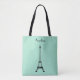 Die Tasche in grün und schwarz ist nach Pariser Motiven gestaltet und zeigt den Eiffelturm in der Mitte mit einem personalisierten Namen oder Text oben. Eine großartige Tasche für alle, die Frankreich oder Paris Lieben!