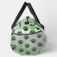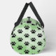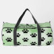 This refreshing Gear bag features a soft mint green background adorned with crisp black paw prints. It's a charming Kit bag and an ideal Weekender for nature-loving pet enthusiasts.