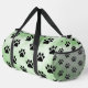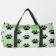 Mint Green Black Paw Print monogram personalize Duffle Bag