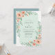 This design features a soft mint green backdrop complemented by delicate peach and apricot roses. Romantic watercolor greenery and sage leaves grace the layout, creating a fresh spring atmosphere. The ethereal botanical elements and soft color palette evoke a sense of graceful romance for a seasonal event.