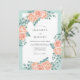 This design features a soft palette of peach and mint green, ideal for a romantic spring event. Delicate watercolor roses in shades of coral and apricot are paired with lush silver dollar eucalyptus foliage. The artwork creates a serene botanical aesthetic against a clean white backdrop.