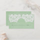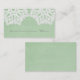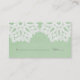 Einfache und raffinierte Elegant Lace Wedding Platzkarten mit einem weißen Spitzenmotiv auf einem hellgrünen Imitat Vintag Papier Hintergrund. Diese klassischen und stilvollen Begleitkarten sind perfekt für eine rustikale Hochzeit. Auf diesen eleganten und stilvollen Begleitkarten wird Platz gegeben, um in den Namen und Tischnummern zu schreiben, in denen jeder Ihrer Gäste am Empfang sitzen wird. Klicken Sie auf den Button "Anpassen", um weitere Personalisierungsoptionen zu finden.