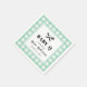 Ein Muster aus frischem, minzgrünem Gingham karierte Rahmen für Babydusche, wie die Mama, um den Namen zu sein, Text auf dieser leicht zu personalisierenden, Papier Cocktail-Serviette. Editieren Sie einfach alle Texte und Sie können die Hintergrundfarbe, die Schriftart und mehr ändern, indem Sie die blaue Schaltfläche "Design bearbeiten" verwenden, bevor Sie den Warenkorb hinzufügen.