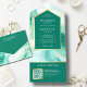 Mint Green Gold Abstrakt Fluid Ink QR Code Hochzei All In One Einladung