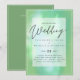 Moderne Hochzeitseinladung mit Textvorlagenfeldern auf beiden Seiten und einer Wolke von grünlich blauer Farbe.