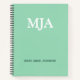 Mint Green Monogram 3-Buchstaben Initials Moderne Notizbuch