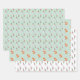 Niedliche Packpapierblätter mit niedlichen Fuchs- und Party-Illustrationen auf einem minzgrünen Hintergrund.
