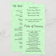 Ein Hochzeitsprogramm mit individuellem Text in schwarz und einem schönen pastellfarbenen, grün polika dot pattern hintergrund. Ein einfaches und stilvolles Design mit einem subtilen Muster in hellen Farben.
