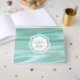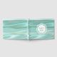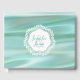 Hübsches Hochzeitsgast-Gästebuch in einem minzgrünen satinierten Look. Ein weißer, laky aussehender Textkreis, auf der mittleren Vorderseite, hat angepassten Text bereit zum Personalisieren.