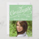 Weiße Wirble Schrift, wirbeln und kurbeln mit "Absolvent", und ein Foto, um die große Leistung anzukündigen. Whimsikal und fantasievoll kursiv mit dem Wort Celebrate auf der Rückseite. Copyright © www.CustomInvitesOnline.com