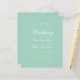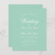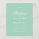 Eine einfache, minimalistische Budget Hochzeitseinladung. Es hat nur weißen Text auf einem grünen Hintergrund. Das Wort Hochzeit und die Namen sind in einem eleganten kalligrafischen Skript geschrieben.