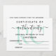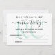 Chic minimalistisches Echtheitszertifikat in schwarz-weiß, das Sie Ihren Namen oder Firmennamen hinzufügen können. Personalisieren Sie Ihre Initialen noch weiter in hellgrün. Auf einer 5 Zoll x 7 Zoll Karte gedruckt. Mit Monogramm Echtheitszertifikat mit den Initialen in Pfefferminzgrün.