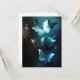 Minze Nacht glühende Schmetterlinge auf schwarz abstraktem Hintergrund.