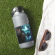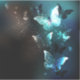 Minze Nacht glühende Schmetterlinge auf schwarz abstraktem Hintergrund.