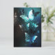 Minze Nacht glühende Schmetterlinge auf schwarz abstraktem Hintergrund.