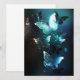 Minze Nacht glühende Schmetterlinge auf schwarz abstraktem Hintergrund.