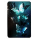 Minze Nacht glühende Schmetterlinge auf schwarz abstraktem Hintergrund.