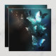 Minze Nacht glühende Schmetterlinge auf schwarz abstraktem Hintergrund.