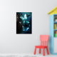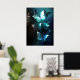 Minze Nacht glühende Schmetterlinge auf schwarz abstraktem Hintergrund.