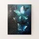 Minze Nacht glühende Schmetterlinge auf schwarz abstraktem Hintergrund.