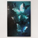 Minze Nacht glühende Schmetterlinge auf schwarz abstraktem Hintergrund.