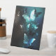 Minze Nacht glühende Schmetterlinge auf schwarz abstraktem Hintergrund.