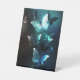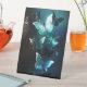 Minze Nacht glühende Schmetterlinge auf schwarz abstraktem Hintergrund.