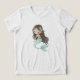 This watercolor illustration features a sweet mermaid with flowing dark hair, soft mint-green tail, and delicate star details scattered around her. The rounded shapes, gentle facial expression, and pastel color palette create a calm and dreamy underwater atmosphere.