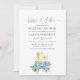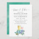 Minze und blaue boho Blume in einem handgemalten Bouquet mit Pfauenfedern, die schnell und einfach für Ihre Verlobungsfeier/Ehepaar-Dusche oder Hochzeitsdusche oder Hochzeitsdusche angepasst werden.