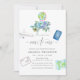 Mint und blau boho florale Brautparty Reise-Thema Brautparty lädt mit Pfauenfedern entwickelt, um schnell und einfach angepasst werden.