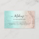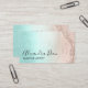 Elegante und stilvolle Makeup-Künstler Visitenkarten mit Imitaten Kupfer-Rose Gold Glitzer Marmor-Textur, minzgrün blaue Textur und eleganten kalligraphischen Schriftart.