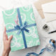 Maßgeschneidertes Umschlagpapier mit dem Namen des Empfängers, gedruckt auf Umschlagpapier! Wie cool ist das! Frühlingspastel Minze Grün und Weiß Vintage Retro Fahrrad Umschlag Papier über Minze Grünbuch. Dieses Retro-Fahrradmuster in Pastellfarben ist ideal für Ostern oder Frühjahr Geburtstage oder Frühjahr Baby-Duschen oder Babygeschenke oder kleine Babyboys oder Big Boys auch! Vielleicht ist der Metallkorb auf dem Fahrrad einfach zu niedlich für Worte. Das zufällige Muster des Retrobikes ist charmant und süß genug, um jedem ein Lächeln ins Gesicht zu geben!