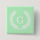 Mint White Wheat Laurel Wreath Initial Monogram Button