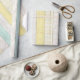 Moderne geometrische und bohhe Muster mit einer rustikalen, holzigen Drehung! Ideal für eine geschlechtsneutrale Babydusche, Kinderzimmer und darüber hinaus. Pastellblau und Senfgelb schaffen eine trendige Palette. Abstrakte Kreise, Zickzack Streifen, subtile Damast Tapete mit viel visueller Textur. ・ In der Minty Yellow Boho Baby Collection finden Sie weitere Produkte dieser Designsuite!