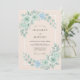 Dieses Design zeigt eine ruhige Farbpalette aus mintsgrün, staubblau und sanften Pfirsich-Tönen. Zarte Aquarellrosen und Hortensien schaffen eine romantische Atmosphäre, die perfekt für ein ätherisches Ereignis ist. Üppiges Blattwerk sorgt für eine botanische Note, die die Frische einer Frühlingswiese hervorruft. Die Aquarelltexturen bieten eine elegante und anspruchsvolle Ästhetik für ein zeitloses Ereignis.