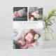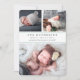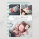 Mit den Ankündigungen zur Geburt des Fotos mit eleganten grauen Schriftzeichen und pastellfarbenen Minzgrün kündigen Sie die Ankunft Ihres süßen Babys an. Flachkarten enthalten drei Ihrer liebsten neugeborenen Fotos - zwei oben und eins unten - mit Babynamen, Geburtsstatistiken und Familiennamen in chic kohlegrau, gerahmt von zwei dünnen Bändern Minzgrün. Die Karten werden in Pfefferminzstreifen und weiße Streifen umgewandelt.