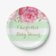 Mintstreifen Pink Wasserfarbe Babyduschplatte Pappteller