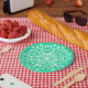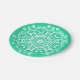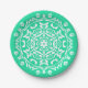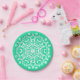Dieses weiße Mandala liegt auf einem minzigen grünen Hintergrund. Die Farben sind sehr entspannend und hell. Teil der Sammlung Mola Mandala.