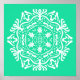 Dieses weiße Mandala liegt auf einem minzigen grünen Hintergrund. Die Farben sind sehr entspannend und hell. Teil der Erghenn Mandala Kollektion.