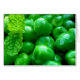 Notecard mit einem Foto frischer Sommererbsen und einer Prise frischer Minze.