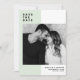 Miniaturfarbblock mit modernem Typografie-Foto Ankündigung Datum freihalten. Individuell anpassbare Save the Date mit moderner Typografie mit Minz- und Weißblockhintergrund. Dieses moderne Save the Date ist perfekt für jedes Hochzeitsthema geeignet. Andere Farben sind verfügbar.