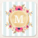 Untersetzer mit Minzstrippmuster, Aquarellpinke Blume und Imitate Goldfolie kundenspezifisch monogramm.