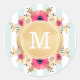 Aufkleber mit Pfefferminzschnitt, Aquarellpinke Blume und Imitate Goldfolie kundenspezifisch monogramm.